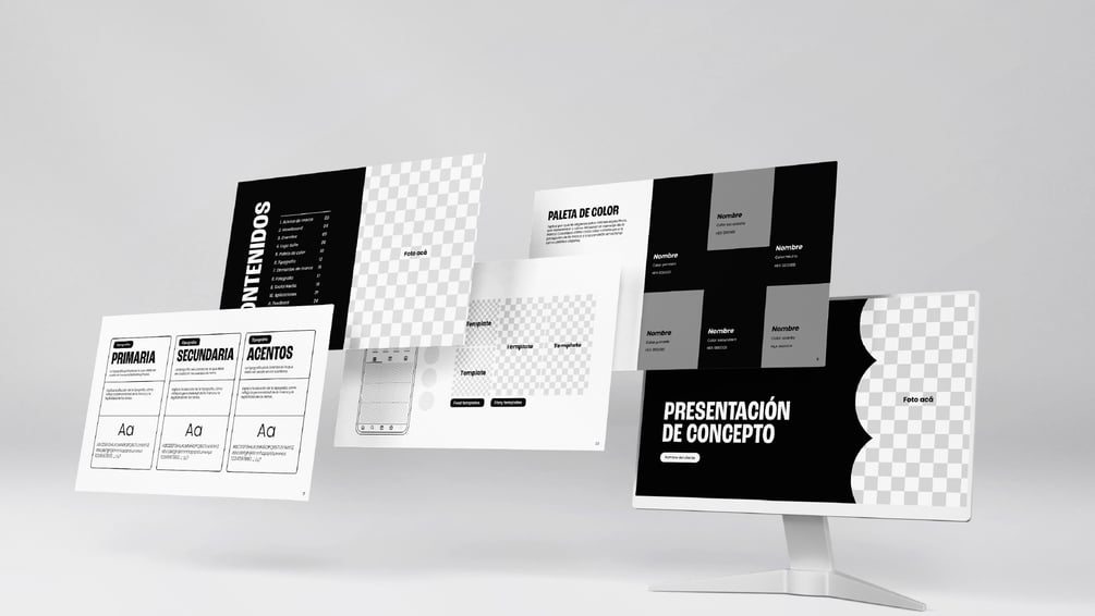 Todo lo que necesitás para ofrecer un proceso de branding completo y estratégico. Este bundle incluye las plantillas necesarias para que puedas cubrir todas las etapas del proceso de diseño de marca: desde la estrategia inicial hasta el cierre final con lineamientos bien presentados.